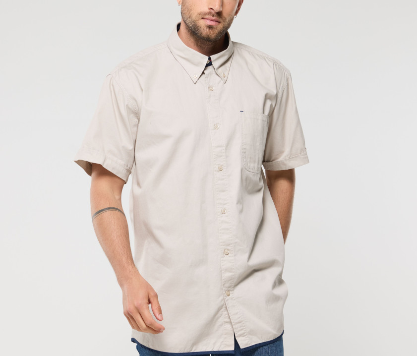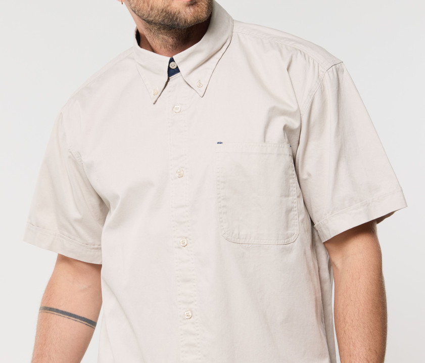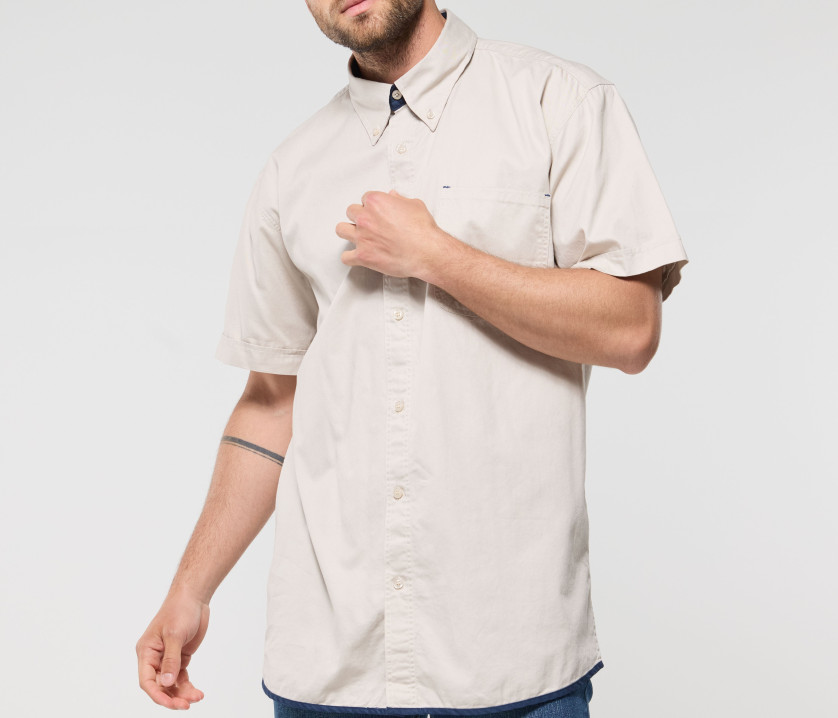 - Poche poitrine. Intérieur col contrasté. Col boutonné.