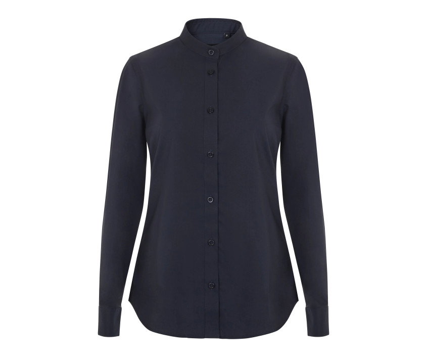 Fermeture boutonnée avec rabat. Col mao. Pinces avant et arrière pour une coupe cintrée. Empiècement dans le dos. Poignets boutonné. Bouton de rechange.