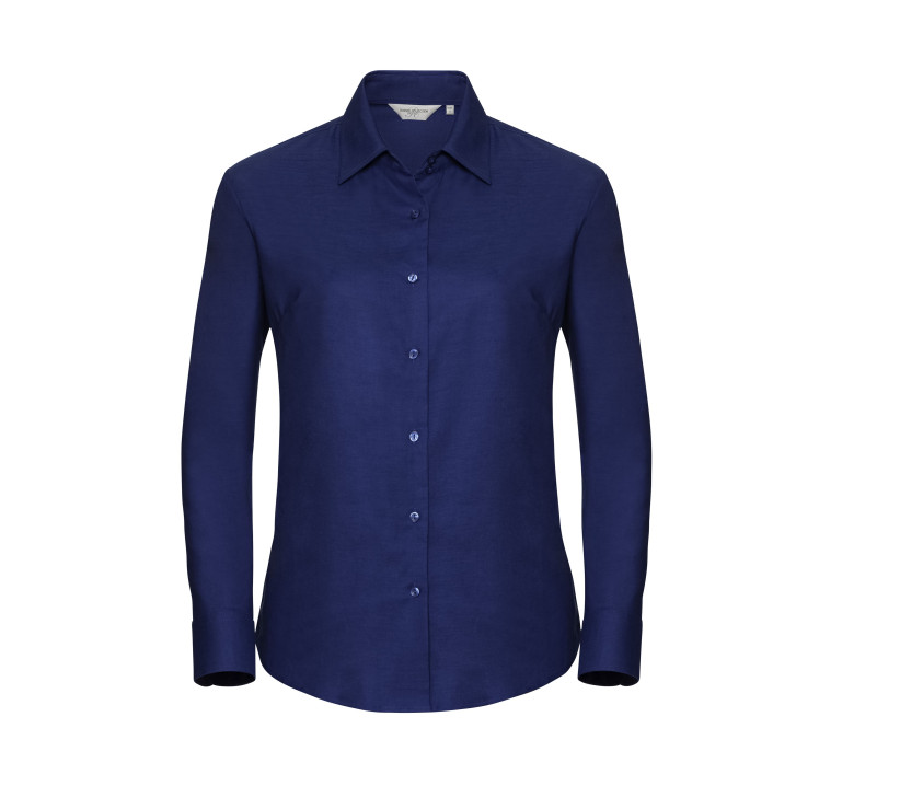 Chemise oxford en 70% coton/30% polyester. Facile d’entretien, repassage minimum. Poignets réglables arrondis à 2 boutons. Sans poche. Pinces au niveau du buste et du dos pour une coupe féminine.