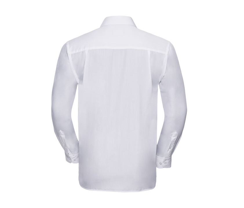 Popeline en polyester/coton. 7 boutons ton sur ton. Poche poitrine côté gauche. Col de forme classique baleiné. 2 plis d’aisance dans le dos. Poignets arrondis 2 boutons. Facile d'entretien, repassage minimum. Lavable à 50°C.