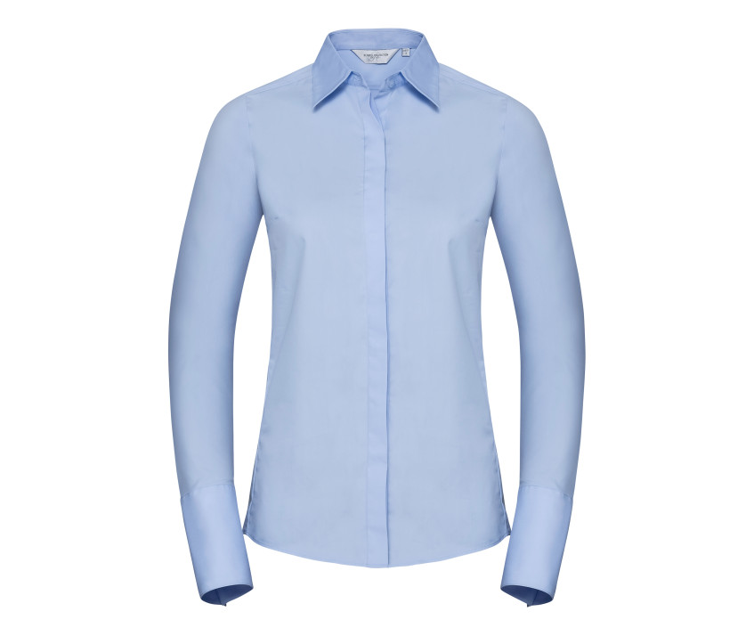 Gestion de l'humidité pour plus de fraîcheur et de confort. Tissu résistant. Coupe cintrée. Col moderne, finition soignée. Patte de boutonnage cachée. Panneaux princesse (sans coutures latérales). Rabat court, col semi-évasé. Pinces au dos. Manchettes et napolitaines. Option boutons de manchette. Sans poche.