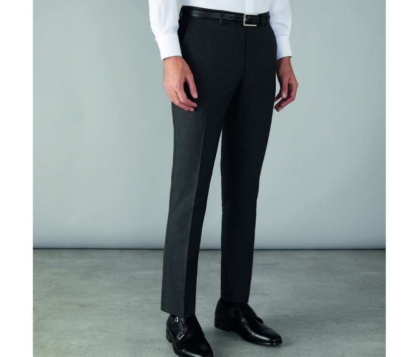 Pantalon homme 1 pli. Coupe skinny. Passants pour ceinture. 2 poches avant. Lavable en machine.