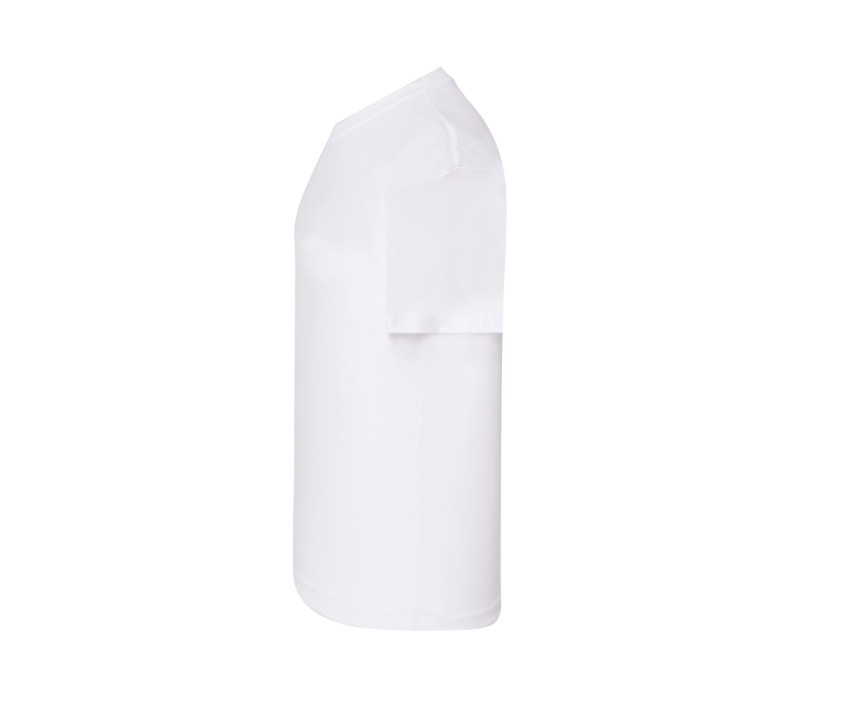 Tee-shirt col rond. Coutures latérales. Col en Lycra®. Double piqûre au col, manches et taille. Bande de propreté d'épaule à épaule.