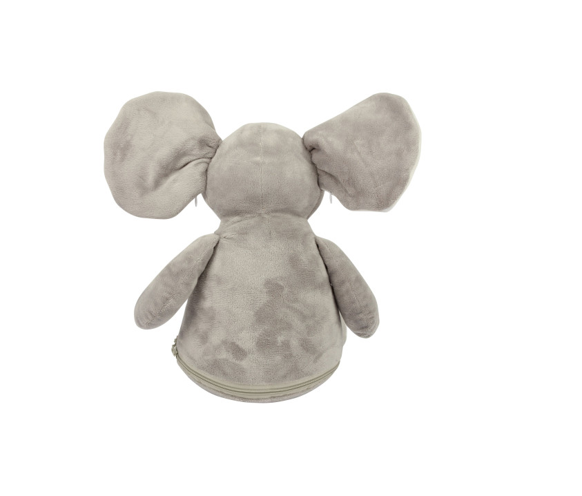 Bas zippé pour un accès direct pour la broderie. Conforme à la norme européenne pour les jouets EN71. Zone d'impression : ventre 16x19cm / oreilles 17x15cm.