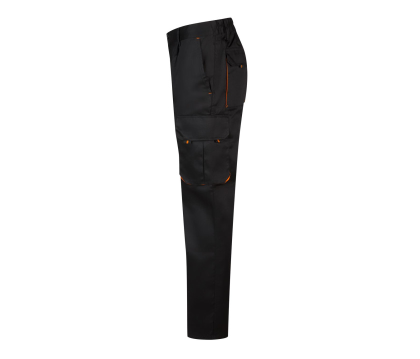 Fermeture à bouton avec braguette zippée. Soufflets des poches, curseurs et coutures contrastés. Tissu arrière renforcé. Taille élastiquée. Double couture renforcée. 6 poches : 2 poches latérales, 2 poches sur les cuisses avec rabat, Velcro® et curseurs.