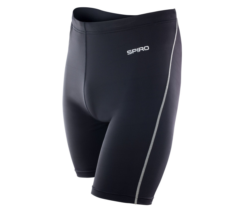 Tissu avec traitement de séchage rapide Quick Dry. Coupe confortable. Coutures plates latérales contrastées. Ceinture élastiquée avec cordon de serrage. Logo imprimé SPIRO ultra-réfléchissant sur la cuisse gauche avec 6 points sur le bas arrière de la jambe droite. Tissu extensible Micro Soft. Petite poche centrale intérieure à l'arrière.
