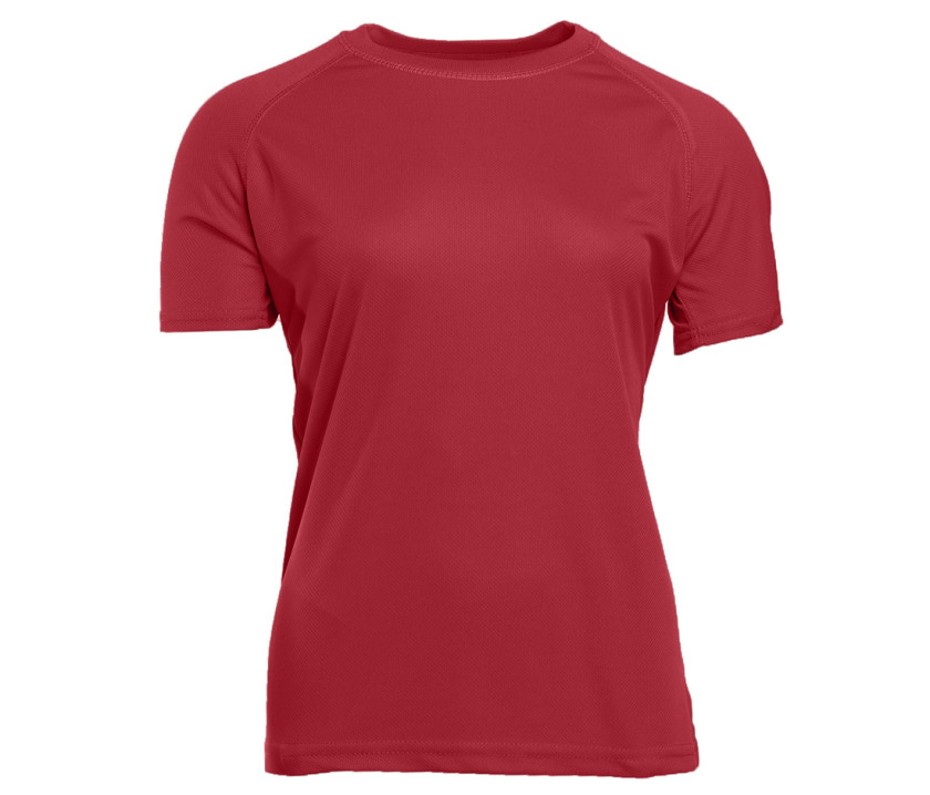 Tee-shirt femme en 100% polyester à séchage rapide. Coupe ajustée. Léger et respirant, tee-shirt adapté pour le sport. Manches raglan. Pas d'étiquette au col pour plus de confort.