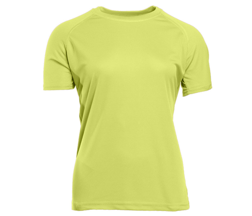 Tee-shirt femme en 100% polyester à séchage rapide. Coupe ajustée. Léger et respirant, tee-shirt adapté pour le sport. Manches raglan. Pas d'étiquette au col pour plus de confort.