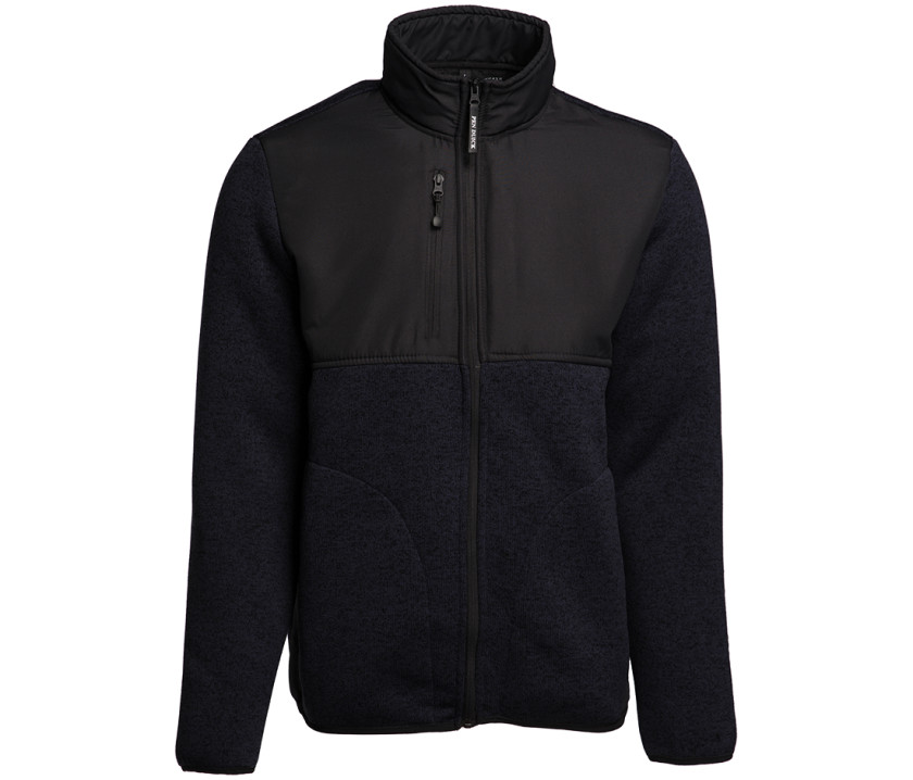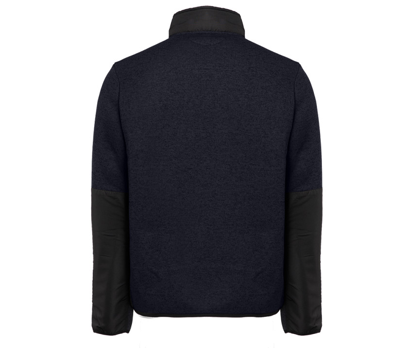 Polaire tricotée épaisse doublée sherpa. Poche poitrine zippée. 2 poches zippées latérales. Empiècements poitrine et côtés, renforts aux coudes, en polyester 300D.