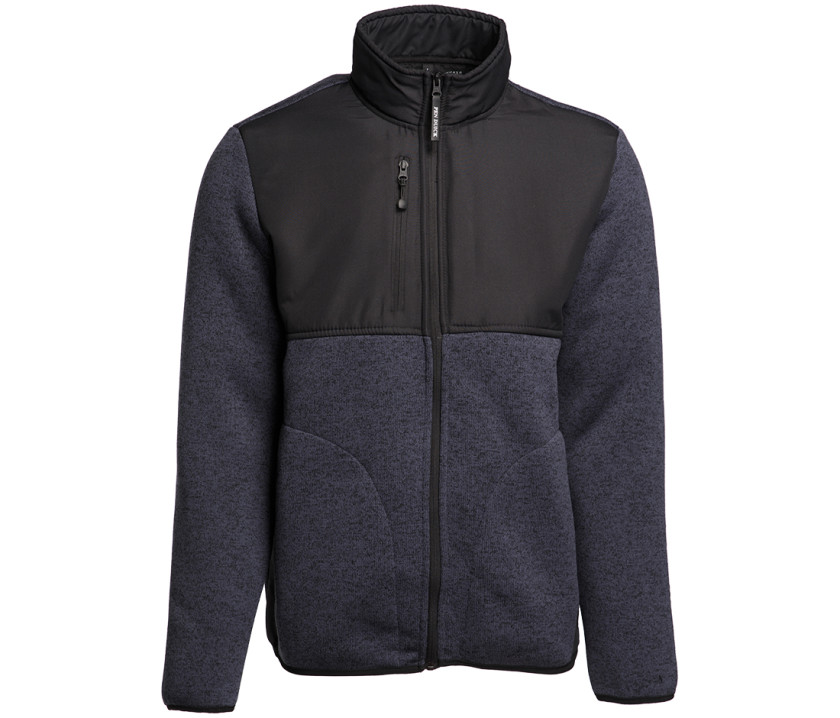 Polaire tricotée épaisse doublée sherpa. Poche poitrine zippée. 2 poches zippées latérales. Empiècements poitrine et côtés, renforts aux coudes, en polyester 300D.