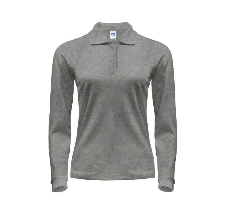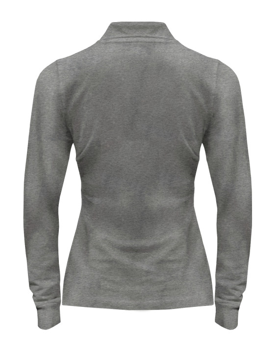 Polo manches longues femme 200 - Maille piquée. Plaquette 3 boutons ton sur ton. Fentes latérales.