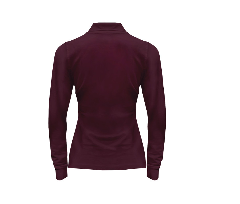 Polo manches longues femme 200 - Maille piquée. Plaquette 3 boutons ton sur ton. Fentes latérales.