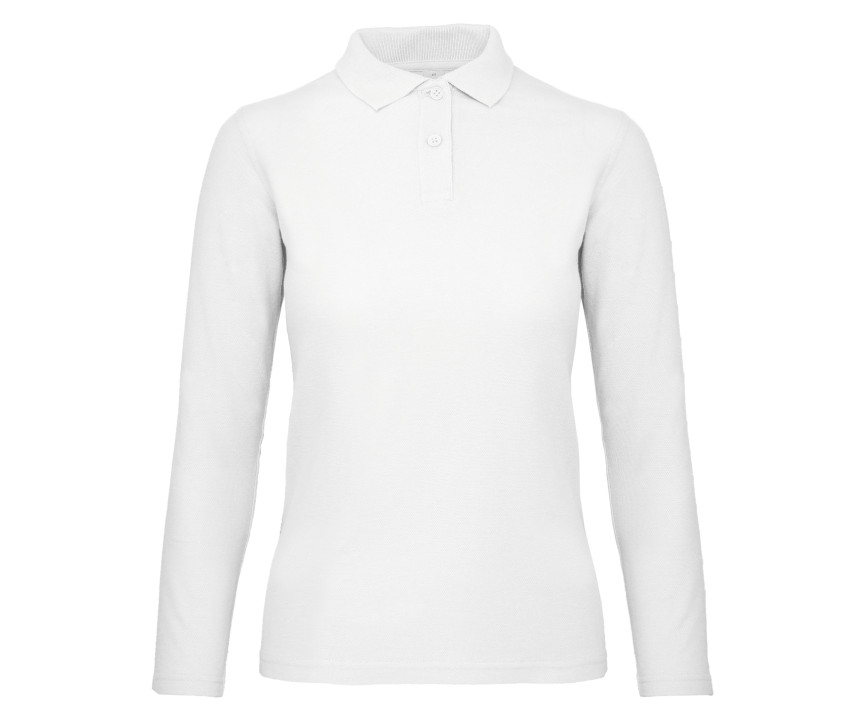 Polo piqué femme manches longues. Col en côte 1x1. Plaquette renforcée 2 boutons ton sur ton. Coutures latérales. Coupe cintrée. Bande de propreté au col. Manches courtes Réf. BCI1F page 67.