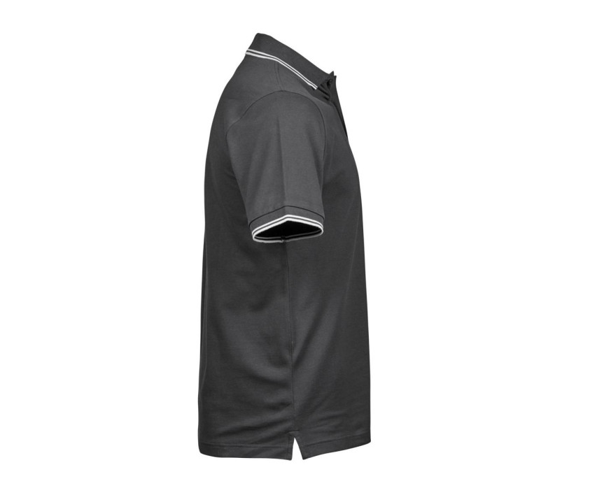 Maille piquée mini. Liserés contrastés sur col et manches. Col à côte tricoté avec Lycra. Pré-rétréci. Bande de propreté. Plaquette 3 boutons ton sur ton.