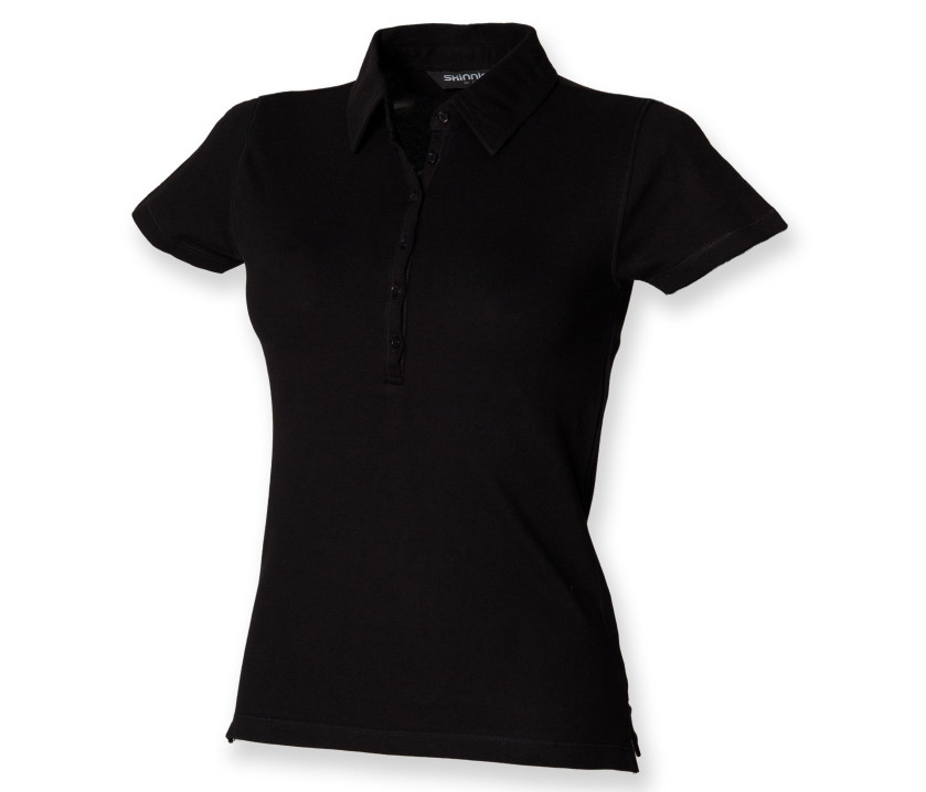 Maille micro piquée, doux et extensible en coton/élasthanne. Col profond à 6 boutons. Fentes latérales. Manches américaines. Style ajusté avec col profond. Manches longues Réf. SK044.