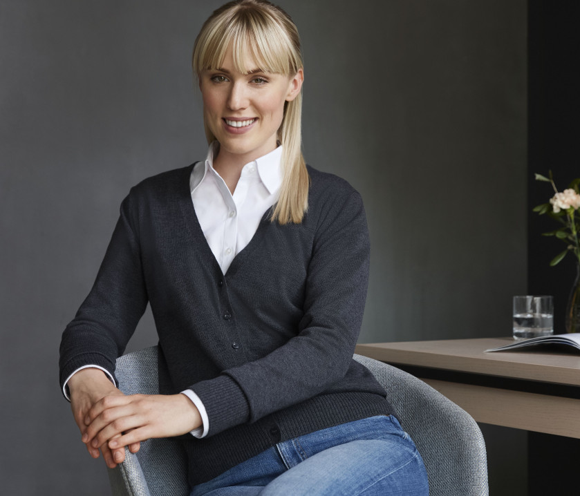Cardigan femme col V au style contemporain et facile d’entretien. Boutons unis. Manches montées. Lavage à 40°C. Bouton de rechange. Finitions poignets et bas en élasthanne.