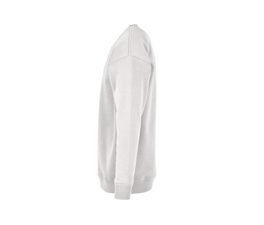 Col rond. Coupe classique. Manches droites. Sans étiquette de marque, uniquement une puce de taille. Col, taille et manches avec bords côte. Impression au col possible. Épaules tombantes. Bande de propreté au col.