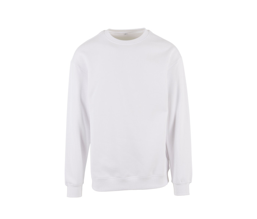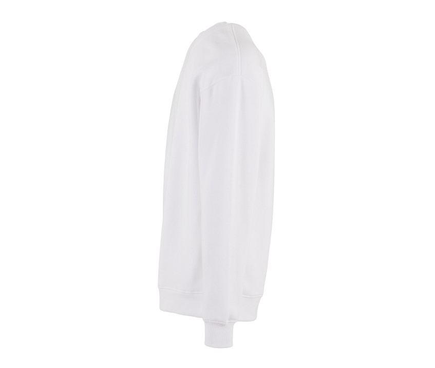 Col rond. Coupe classique. Manches droites. Sans étiquette de marque, uniquement une puce de taille. Col, taille et manches avec bords côte. Impression au col possible. Épaules tombantes. Bande de propreté au col.