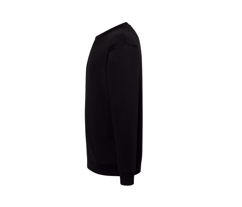 Sweat unisexe - Double piqûre col, manches et taille. Bord côte 1x1 avec Lycra® au col, aux poignets et à la taille. Col rond. Stock en conversion : polyester/coton vers coton/polyester recyclé. Intérieur gratté.