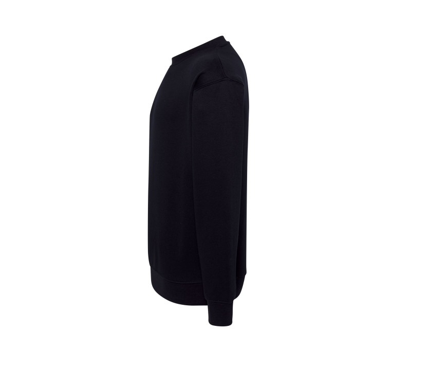 Sweat unisexe - Double piqûre col, manches et taille. Bord côte 1x1 avec Lycra® au col, aux poignets et à la taille. Col rond. Stock en conversion : polyester/coton vers coton/polyester recyclé. Intérieur gratté.