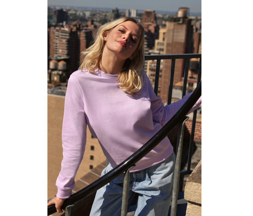 Sweat col rond en french terry (intérieur non gratté). Coupe et longueur de corps confortables. Coutures latérales. Sans étiquette de marque. Tissu résistant et toucher doux. Coupe moderne et ajustée. Manches droites. Col, poignets et taille en bords côte.