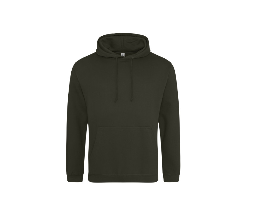 Capuche doublée. Poche kangourou. Double coutures. Cordons ton sur ton. Poignets et ourlet en bords côte. Étiquette détachable.