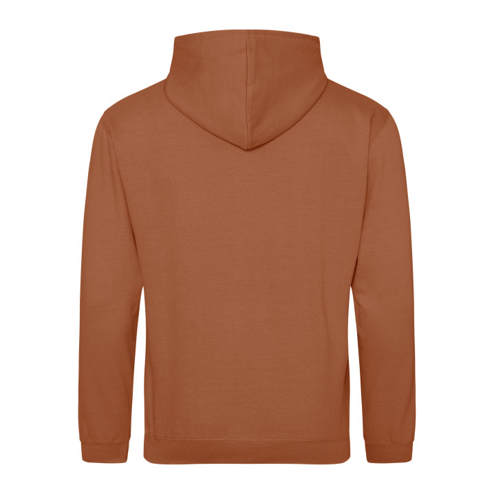 Capuche doublée. Poche kangourou. Double coutures. Cordons ton sur ton. Poignets et ourlet en bords côte. Étiquette détachable.