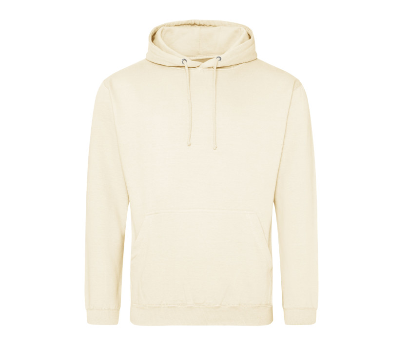 Capuche doublée. Poche kangourou. Double coutures. Cordons ton sur ton. Poignets et ourlet en bords côte. Étiquette détachable.