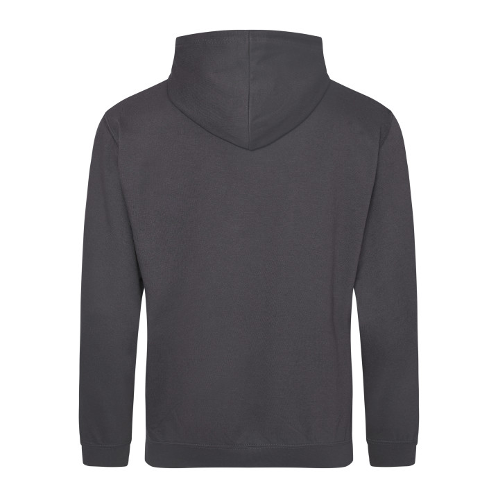 Capuche doublée. Poche kangourou. Double coutures. Cordons ton sur ton. Poignets et ourlet en bords côte. Étiquette détachable.
