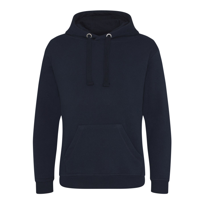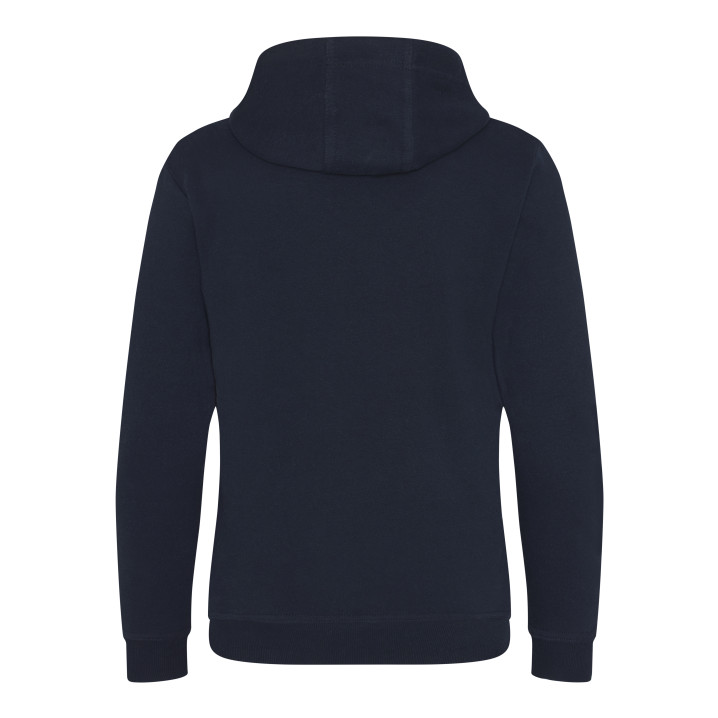 Sweat lourd. Double couture. Capuche avec intérieur en coton. Cordons plats. Poche kangourou. Poignets et ourlet en bords côte 2x1. Coutures plates sur la poche. Étiquette détachable.