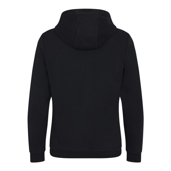 Fermeture grand zip. Zip en plastique. Protège-menton. Capuche avec intérieur en coton et cordons plats. Poignets et ourlet en bords côte 2x1. 2 poches latérales. Coutures plates sur les poches. Étiquette détachable.