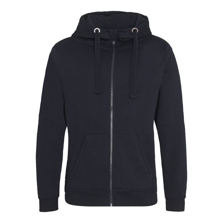 Fermeture grand zip. Zip en plastique. Protège-menton. Capuche avec intérieur en coton et cordons plats. Poignets et ourlet en bords côte 2x1. 2 poches latérales. Coutures plates sur les poches. Étiquette détachable.