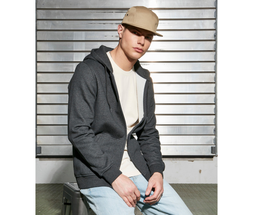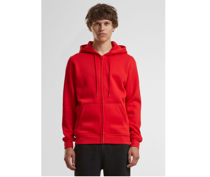 Sweat grand zip dissimulée. Intérieur en molleton gratté. Sans étiquette de marque, puce de taille uniquement. 2 poches frontales. Manches droites. Bords côte à la taille et aux manches. Double coutures sur capuche. Capuche doublée.