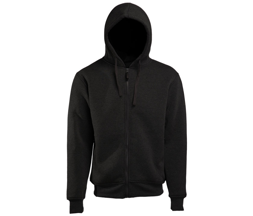 Sweat capuche full zip. Intérieur polaire Sherpa 550 g/m². 2 poches latérales zippées. Cordon plat de serrage. Véritable veste à capuche.