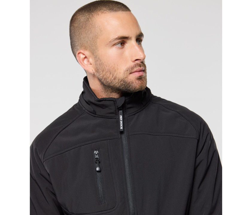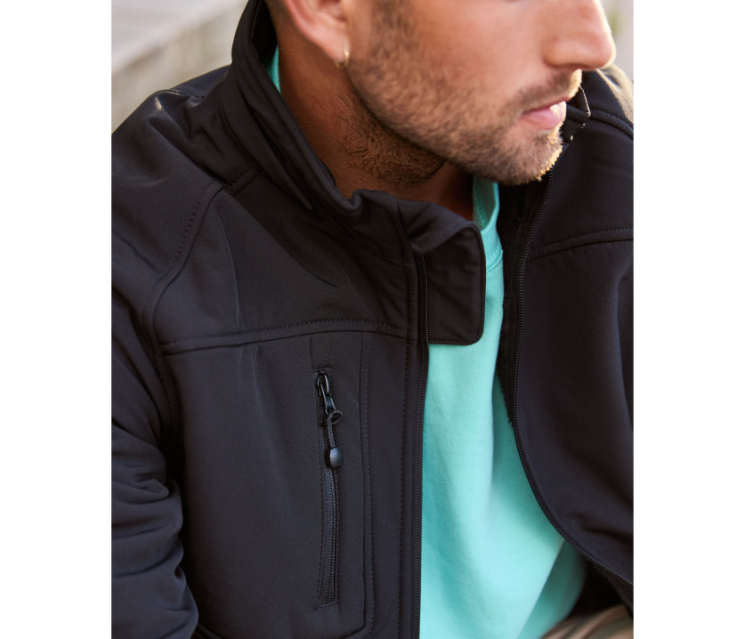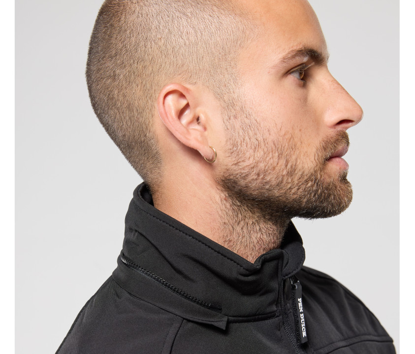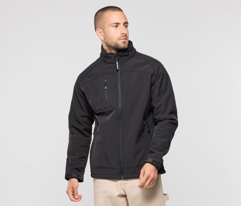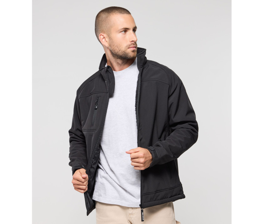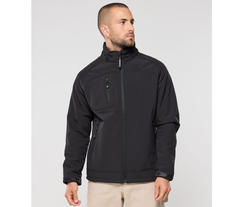- Softshell 3 couches imperméable et respirante. Possibilité d'ajouter les capuches Réf. PK995, Réf. PK996 et Réf. PK997 en option (zip caché dans le col). Intérieur en polaire Sherpa.