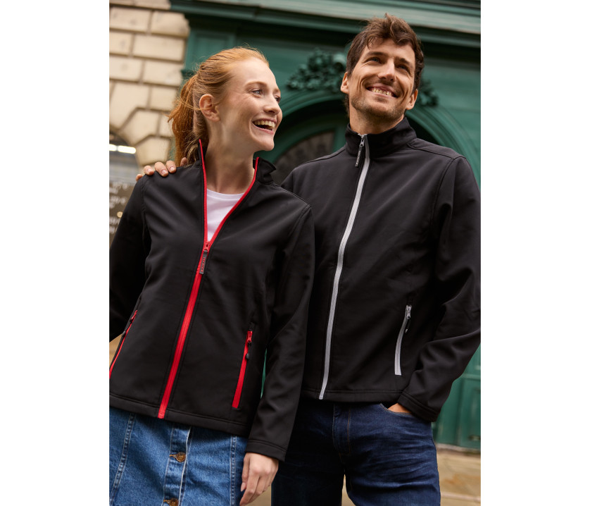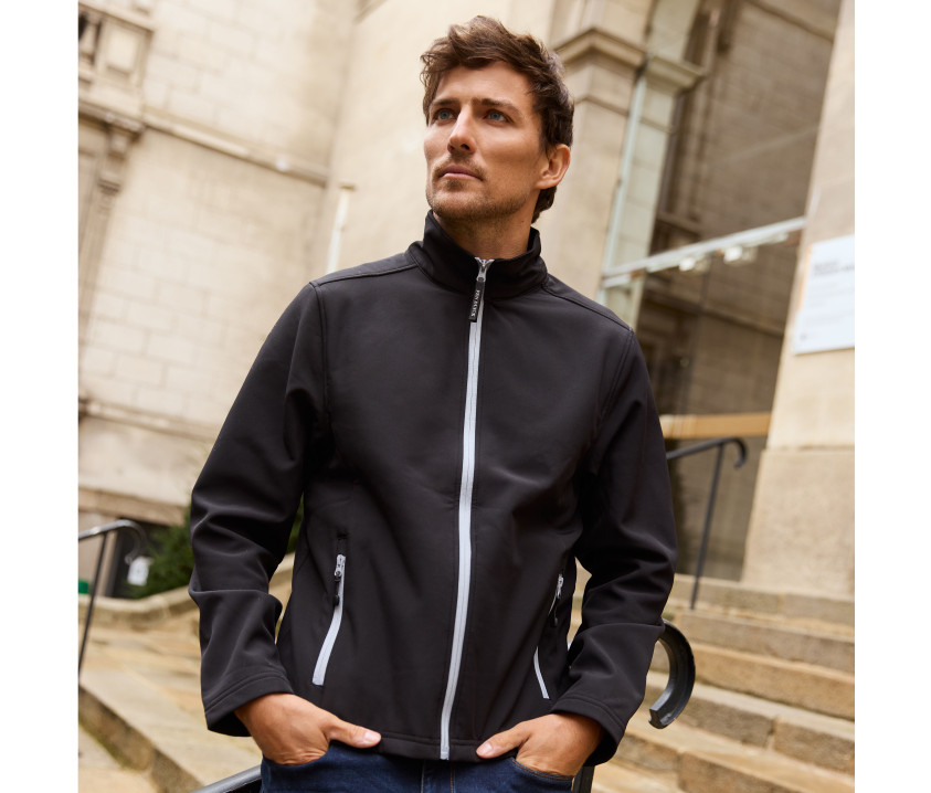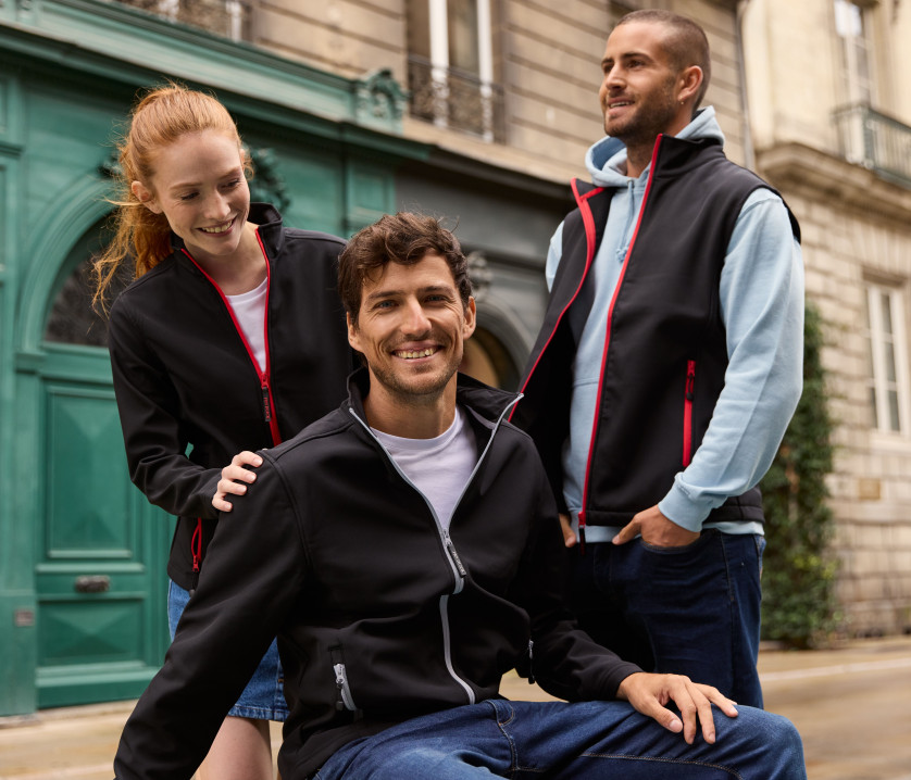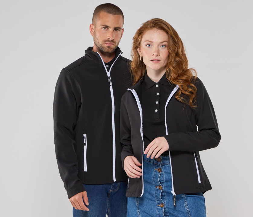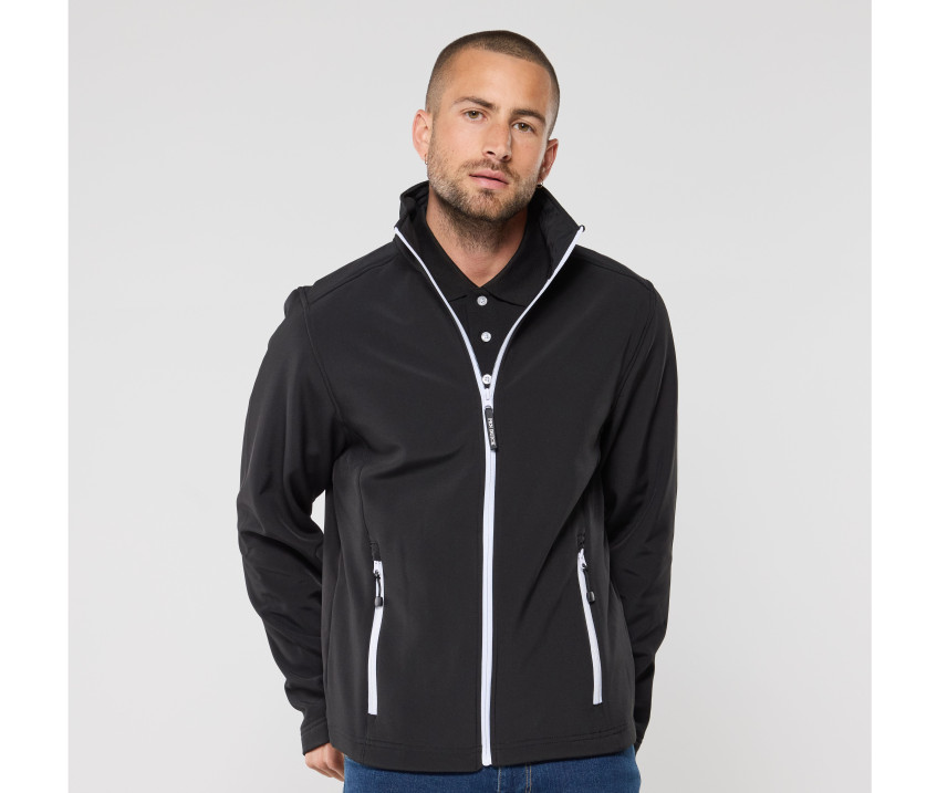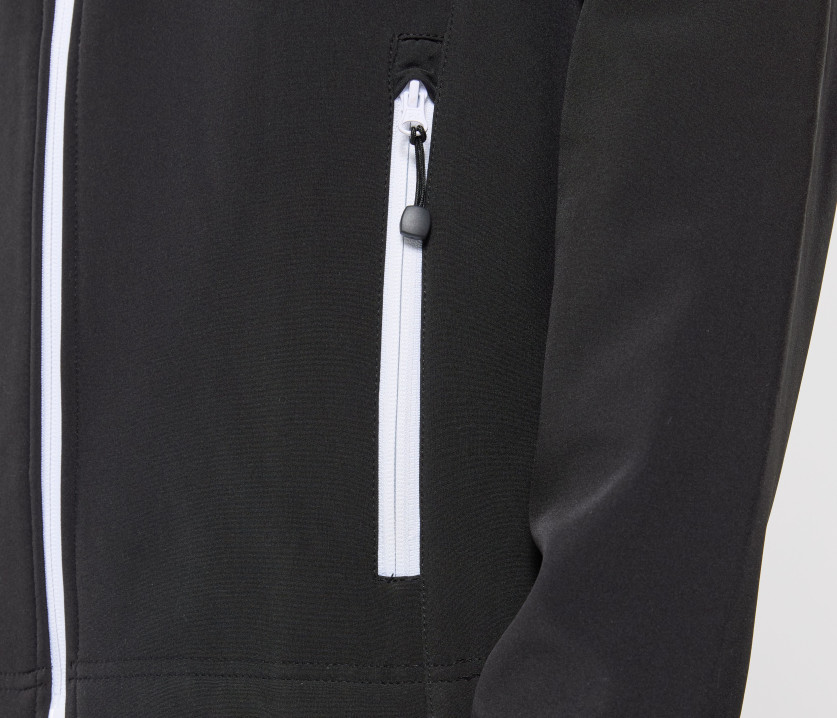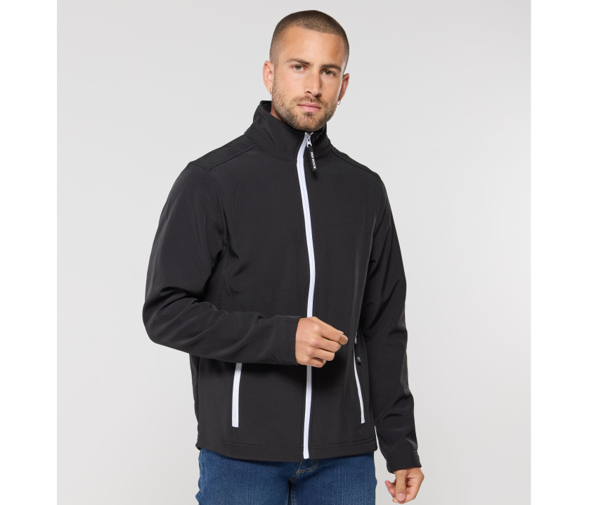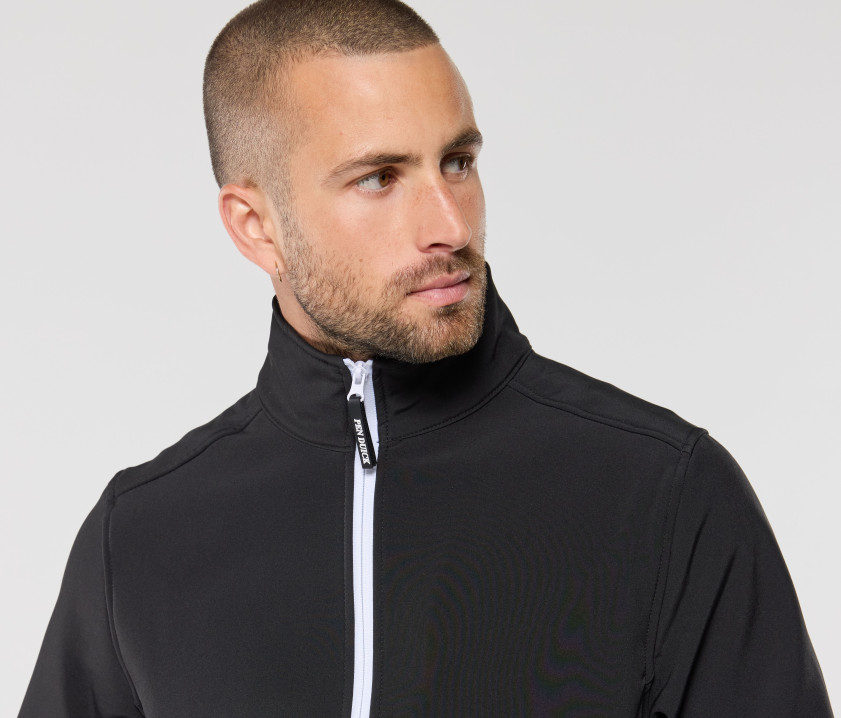 Softshell homme. Doublure polaire. Zip inversé. Manches montées. 2 poches intérieures en filet. 2 poches zippées sur les côtés. Protection menton. Bodywarmer réf. PK330 page 185.