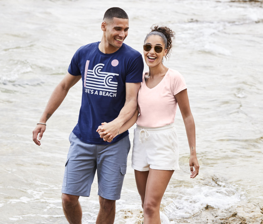 Coupe tubulaire. Étiquette détachable. Bande de propreté. Coupe slim moderne. Toucher plus doux. Col rond étroit en brod côte 1x1.
