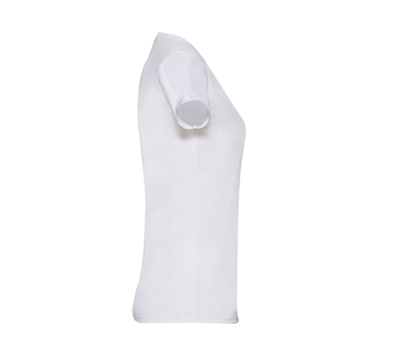 Tee-shirt femme col rond 160 - Maille et jauge plus fines pour une impression à haute résolution. Col rond en bord côte coton/Lycra®. Coutures latérales pour une coupe féminine cintrée.