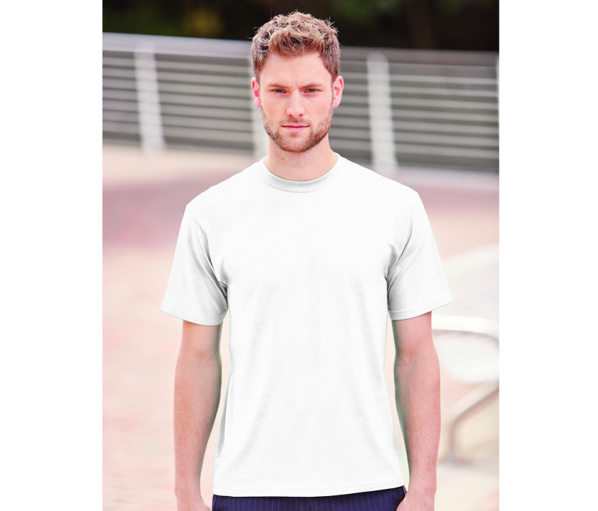 Tee-shirt col rond 180 - Coupe tubulaire. Renfort d'épaule à épaule. Manches travaillées pour un look plus actuel.