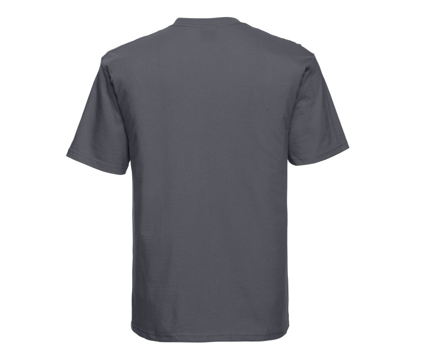 Tee-shirt col rond 180 - Coupe tubulaire. Renfort d'épaule à épaule. Manches travaillées pour un look plus actuel.