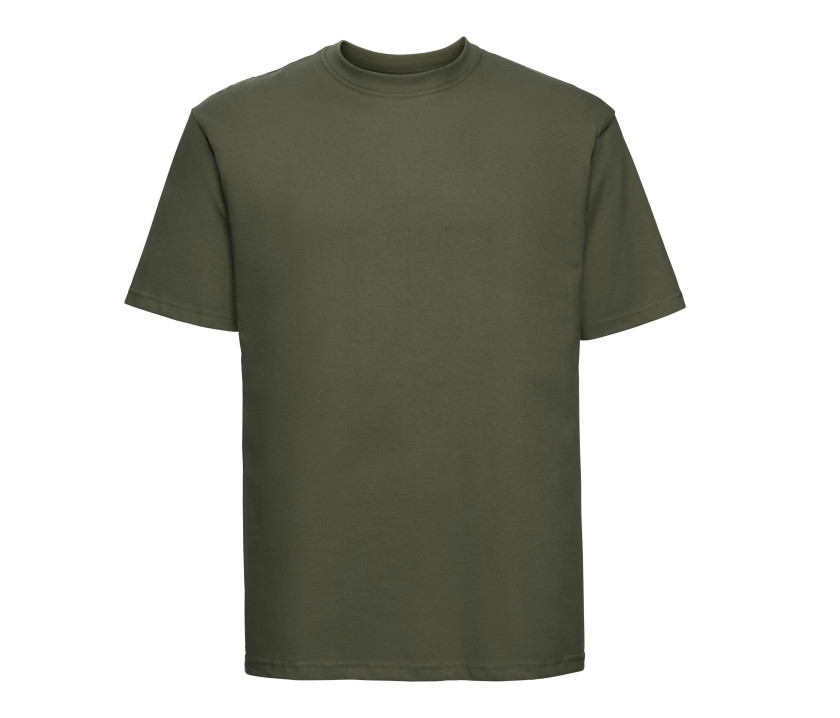 Tee-shirt col rond 180 - Coupe tubulaire. Renfort d'épaule à épaule. Manches travaillées pour un look plus actuel.