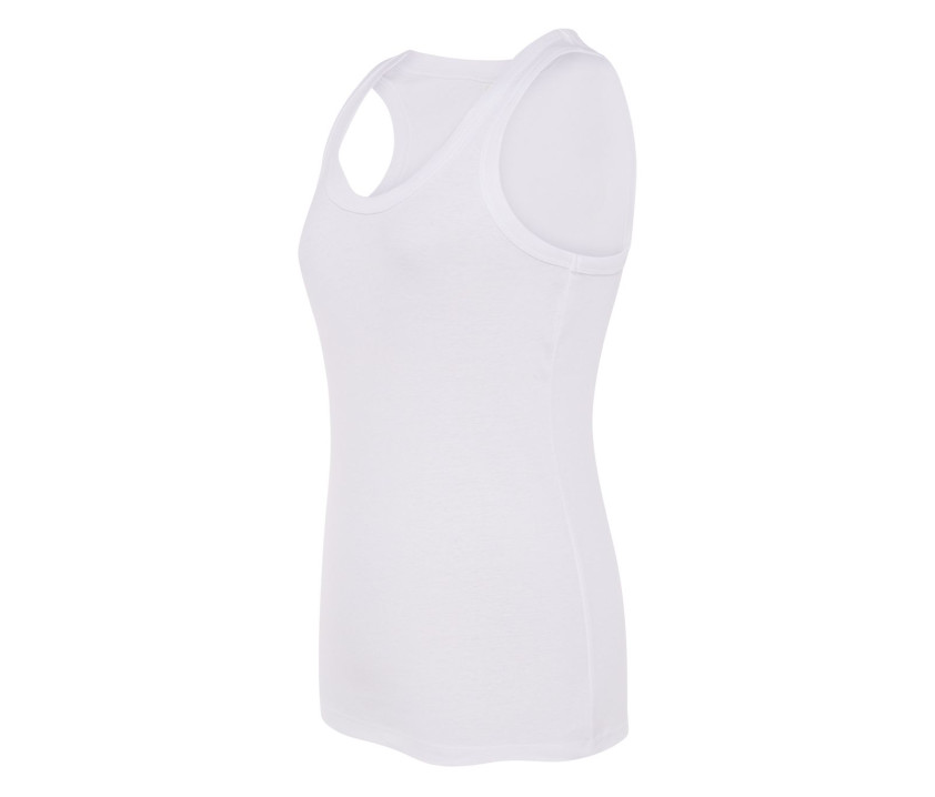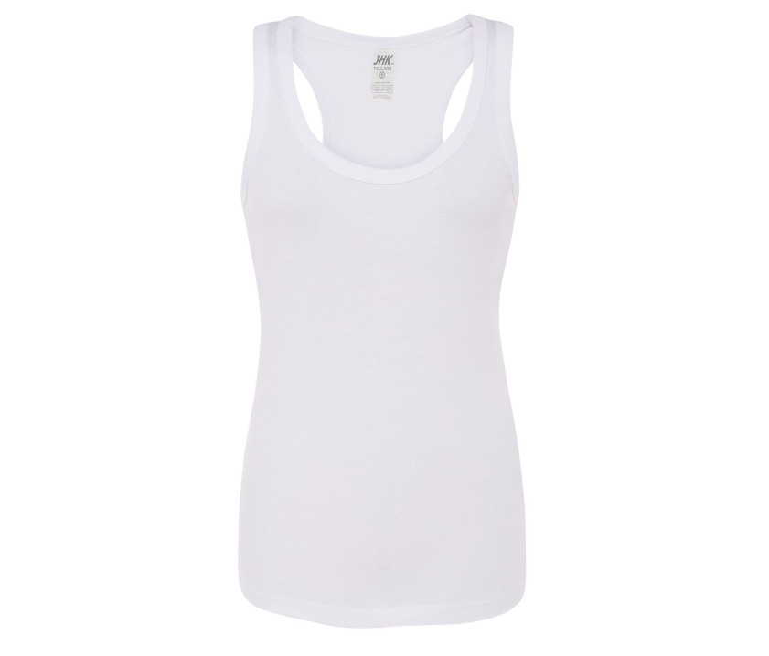 Dos nageur. Coupe ajustée. Étiquette amovible. Bords côte 1x1.
