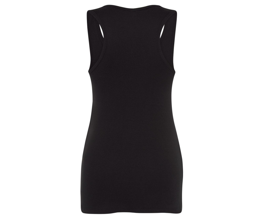 Dos nageur. Coupe ajustée. Étiquette amovible. Bords côte 1x1.