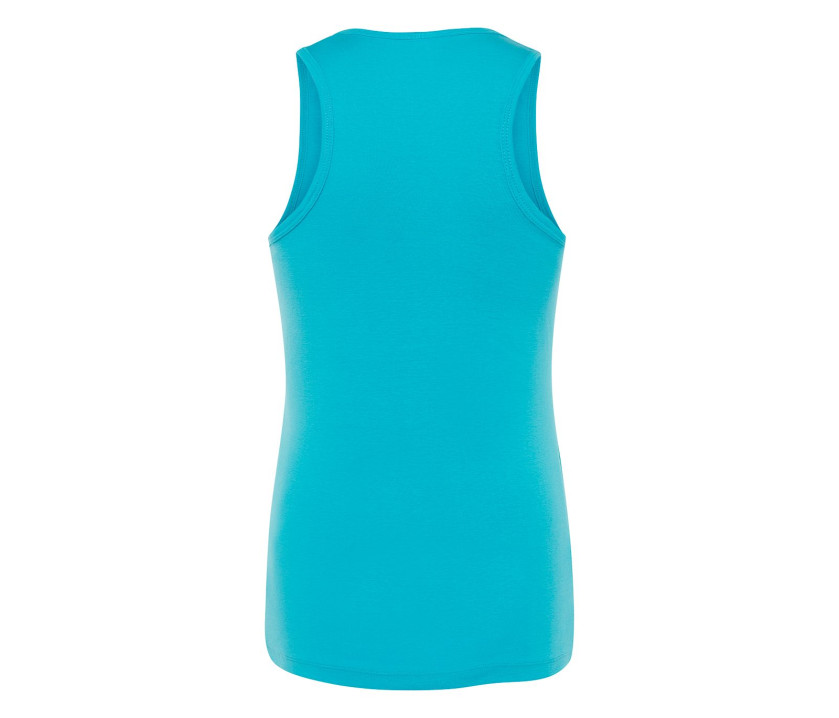 Dos nageur. Coupe ajustée. Étiquette amovible. Bords côte 1x1.