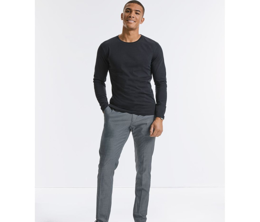 Manches longues. Coupe ajustée moderne. Renfort d'épaule à épaule. Sans étiquette de marque, uniquement une puce de taille. Col étroit avec LYCRA®. Coutures latérales. Surface lisse pour une impression de qualité optimale.