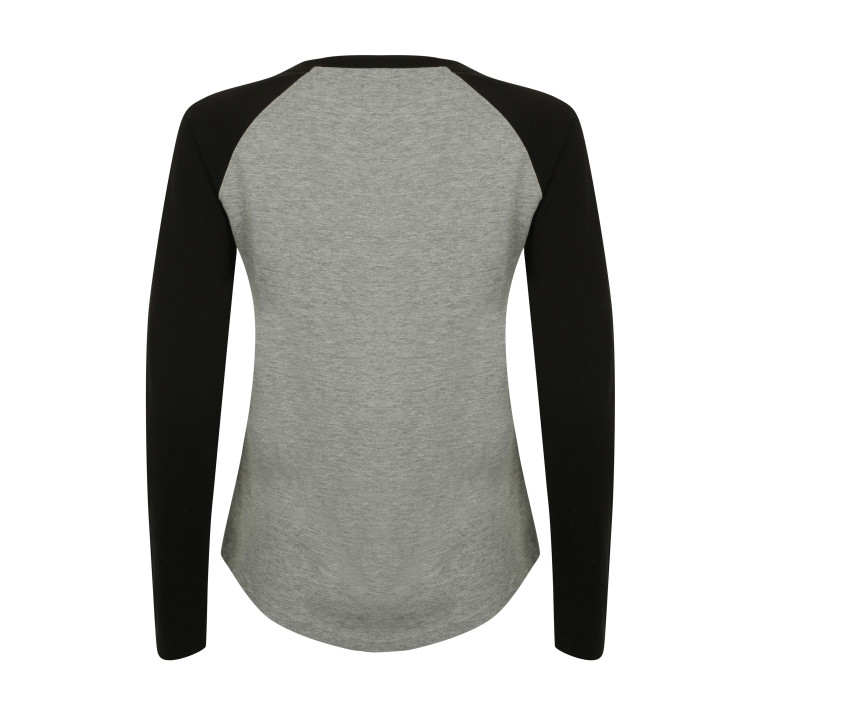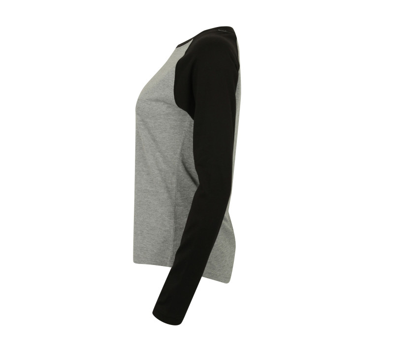 Col et manches raglan contrastés. Double piqûre à l'ourlet. Col en bords côte. Coupe ajustée avec coutures latérales.