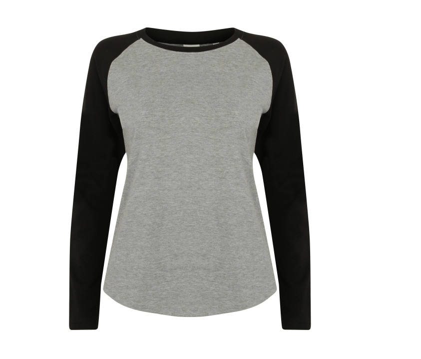 - Col et manches raglan contrastés. Double piqûre à l'ourlet. Col en bords côte.