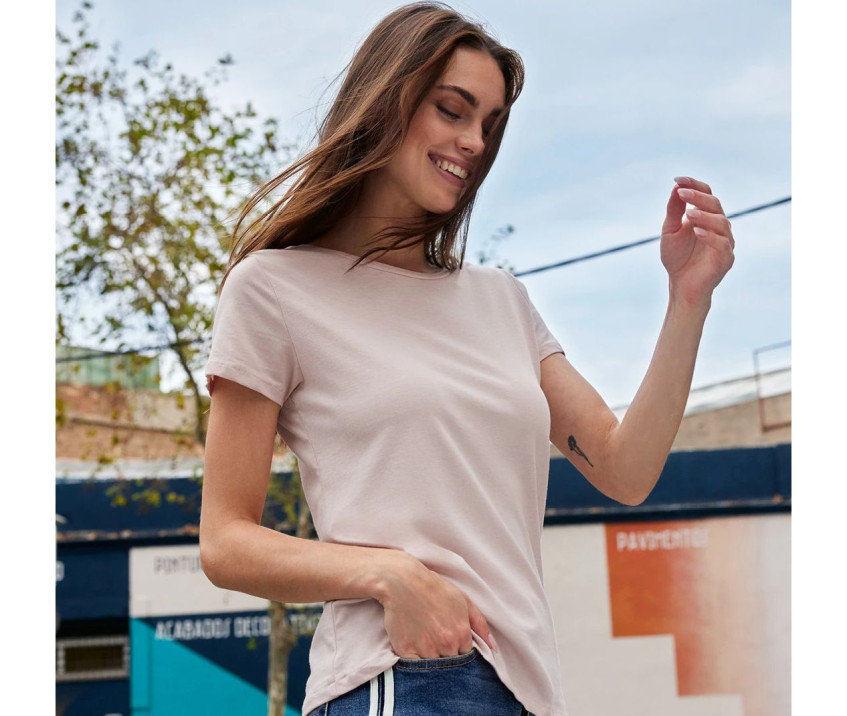 Tee-shirt femme col rond 150 - Tee-shirt manches courtes basique et moderne pour femme, au look contemporain. Coutures latérales. Manches longues Réf. BC06T.