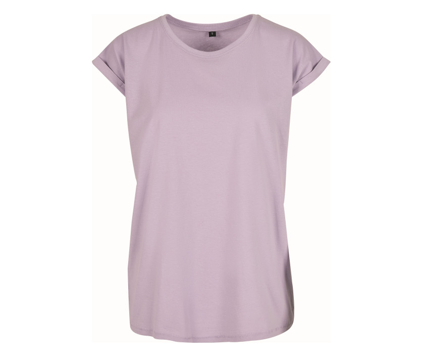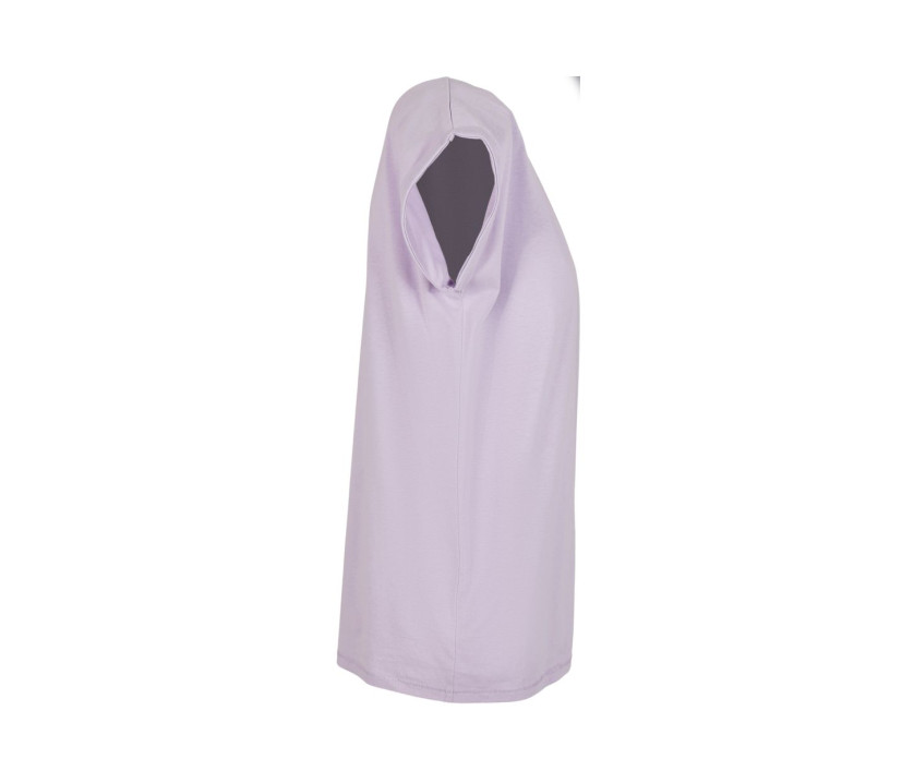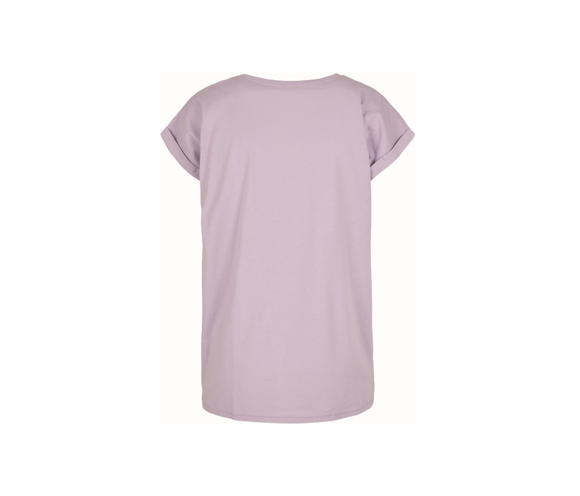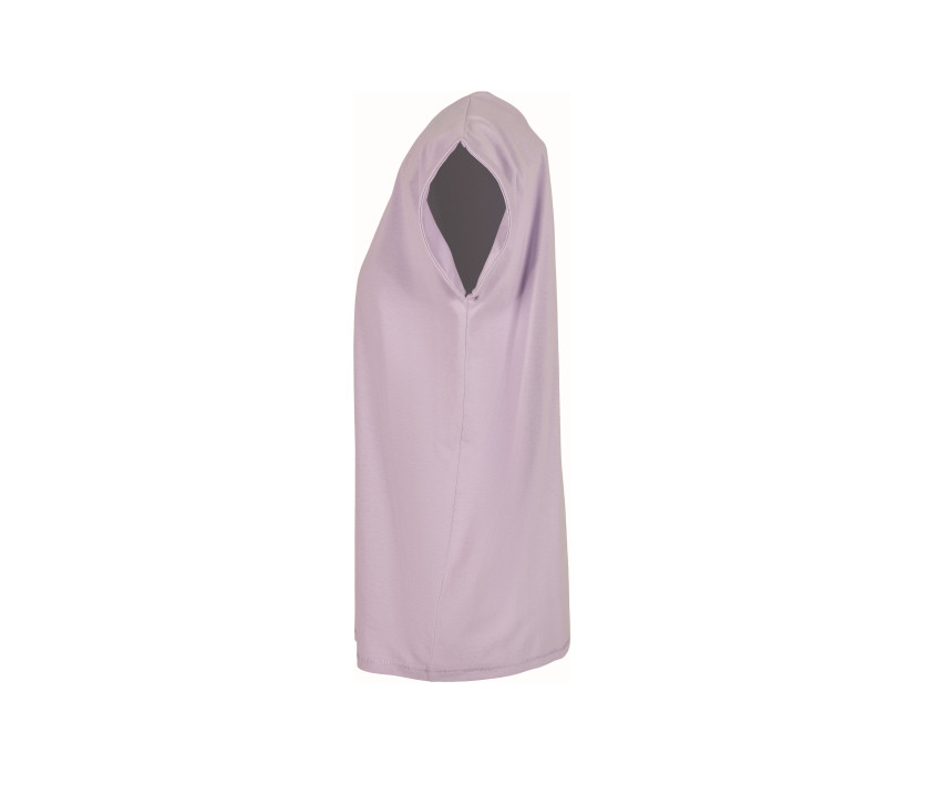 Tee-shirt femme - Coupe longue. Manches courtes et amples. Bouts de manches repliés.