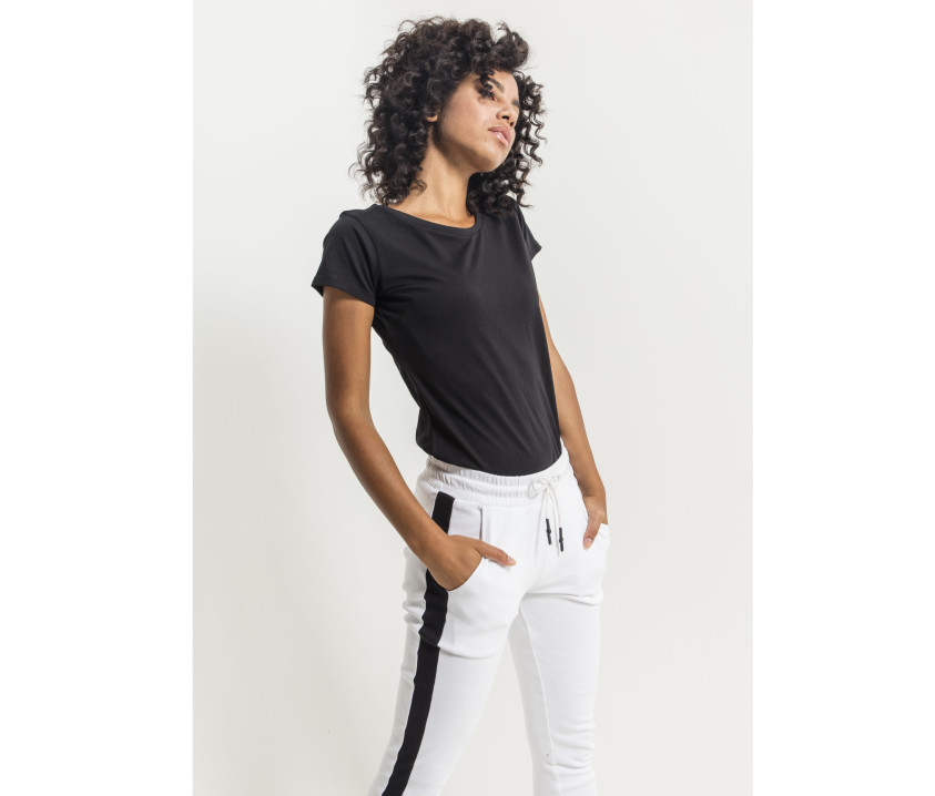 Tee-shirt basique. Forme carrée. Décontracté, mais ajusté au niveau des épaules. Coutures latérales. Sans étiquette de marque, uniquement une puce de taille.